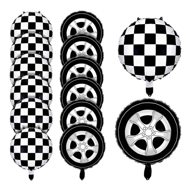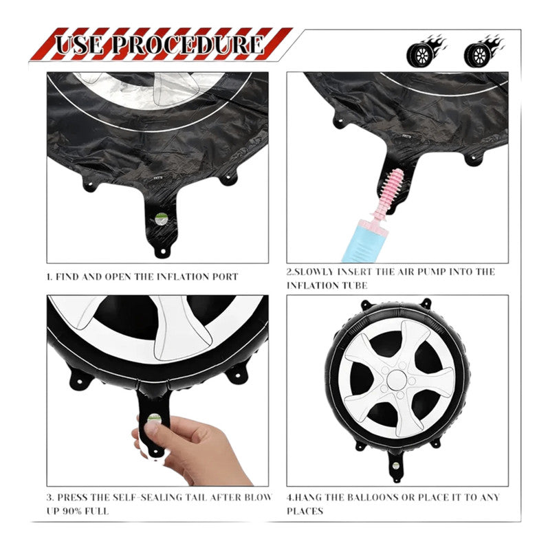 النمط: بالونات على شكل عجلة سيارة ممتعة وديناميكية، تضيف لمسة مميزة ورياضية إلى ديكور حفلتك