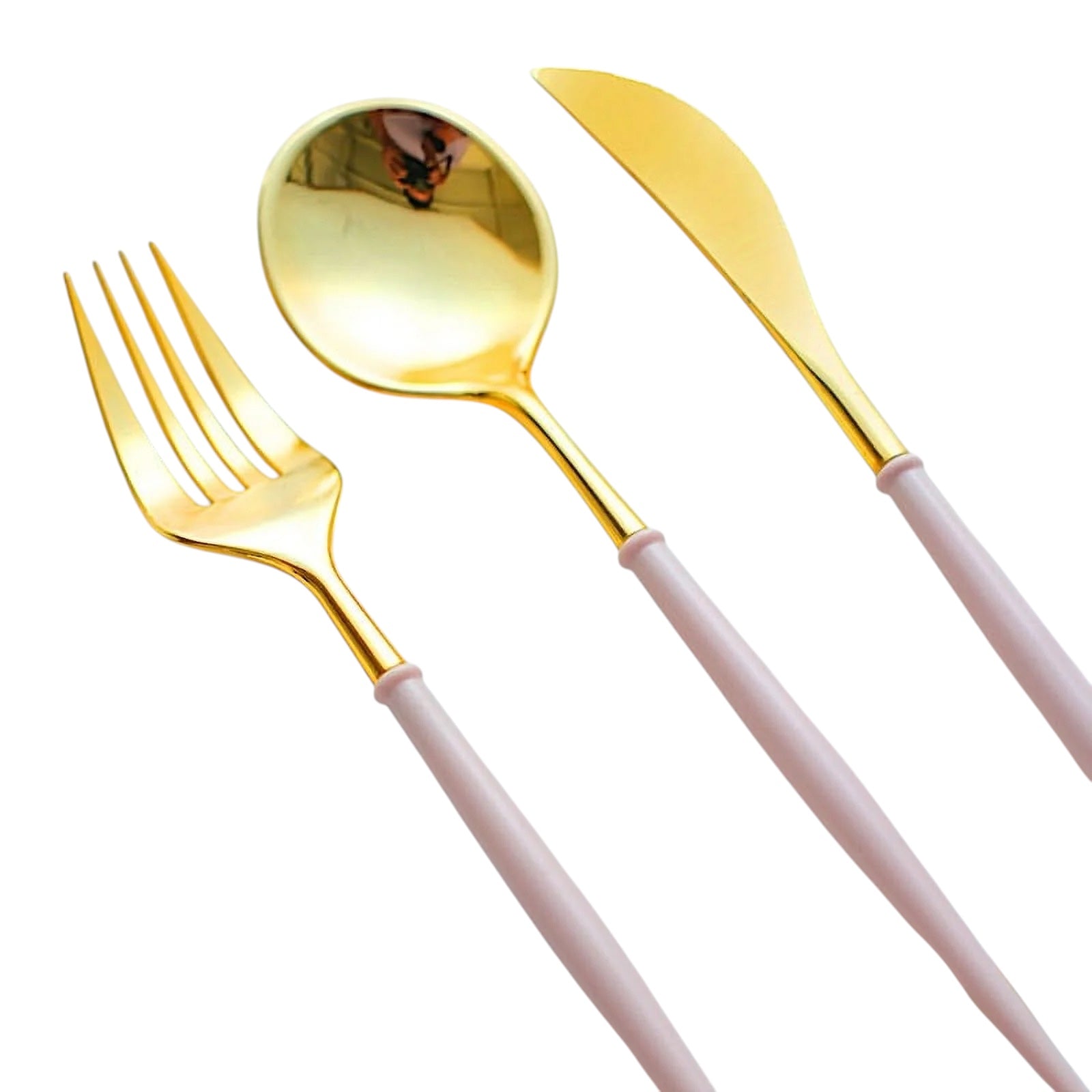 اسم المنتج: مجموعة أدوات مائدة بلاستيكية فاخرة باللونين الذهبي والوردي