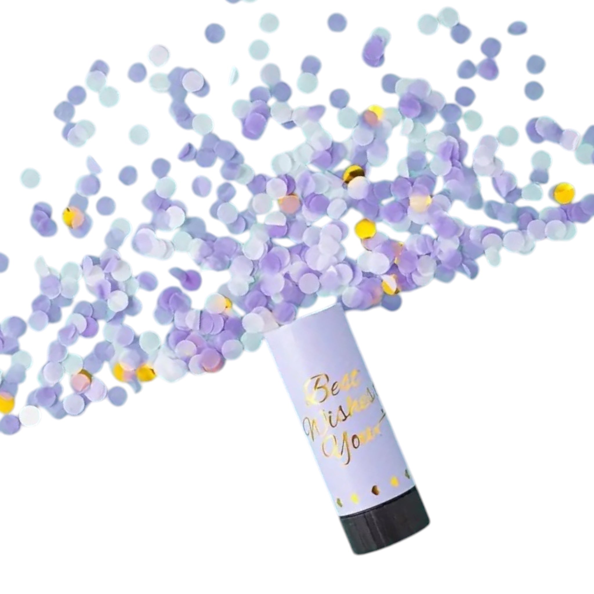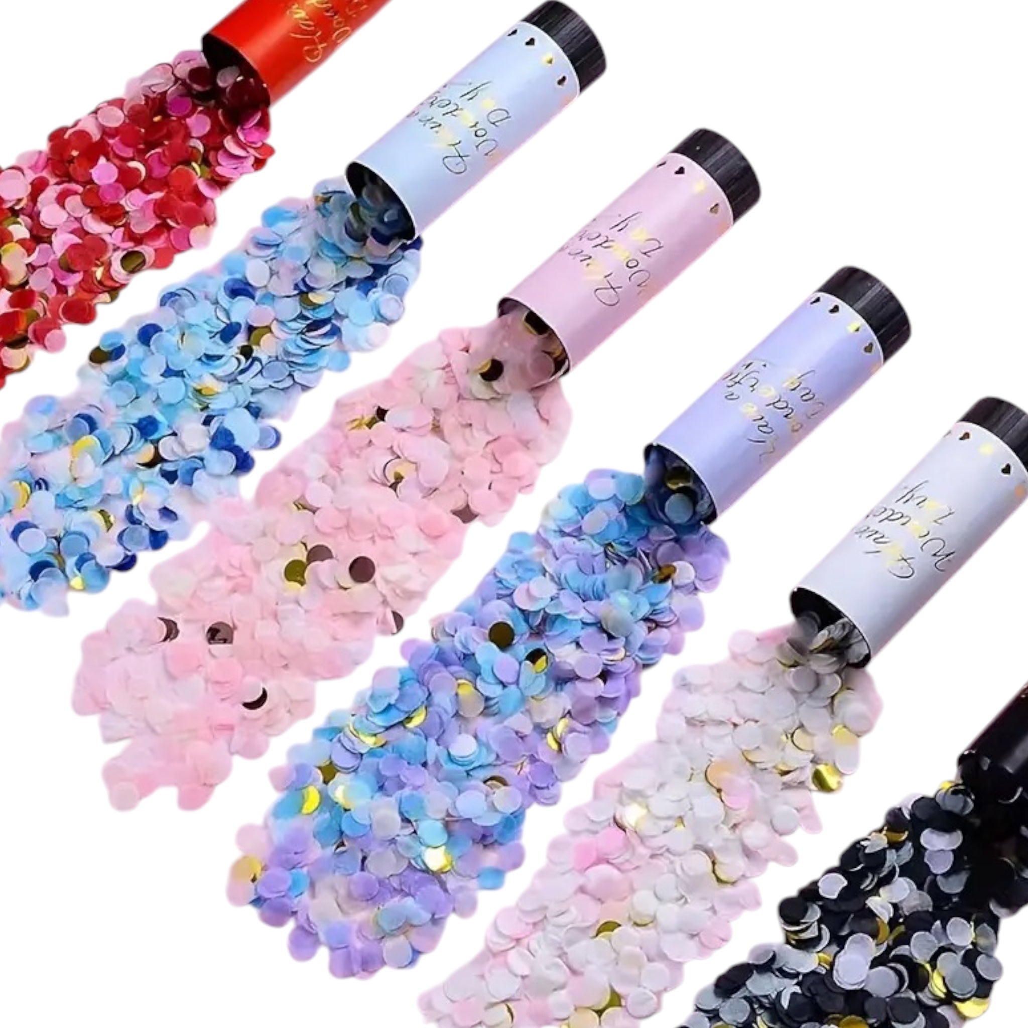المميزات: مملوءة مسبقًا بقصاصات ملونة زاهية وقابلة للتحلل الحيوي بلون بنفسجي. آلية لف سهلة الاستخدام لكشف ممتع وآمن. خفيفة الوزن وسهلة التنظيف، مما يضفي لمسة احتفالية على احتفالك.