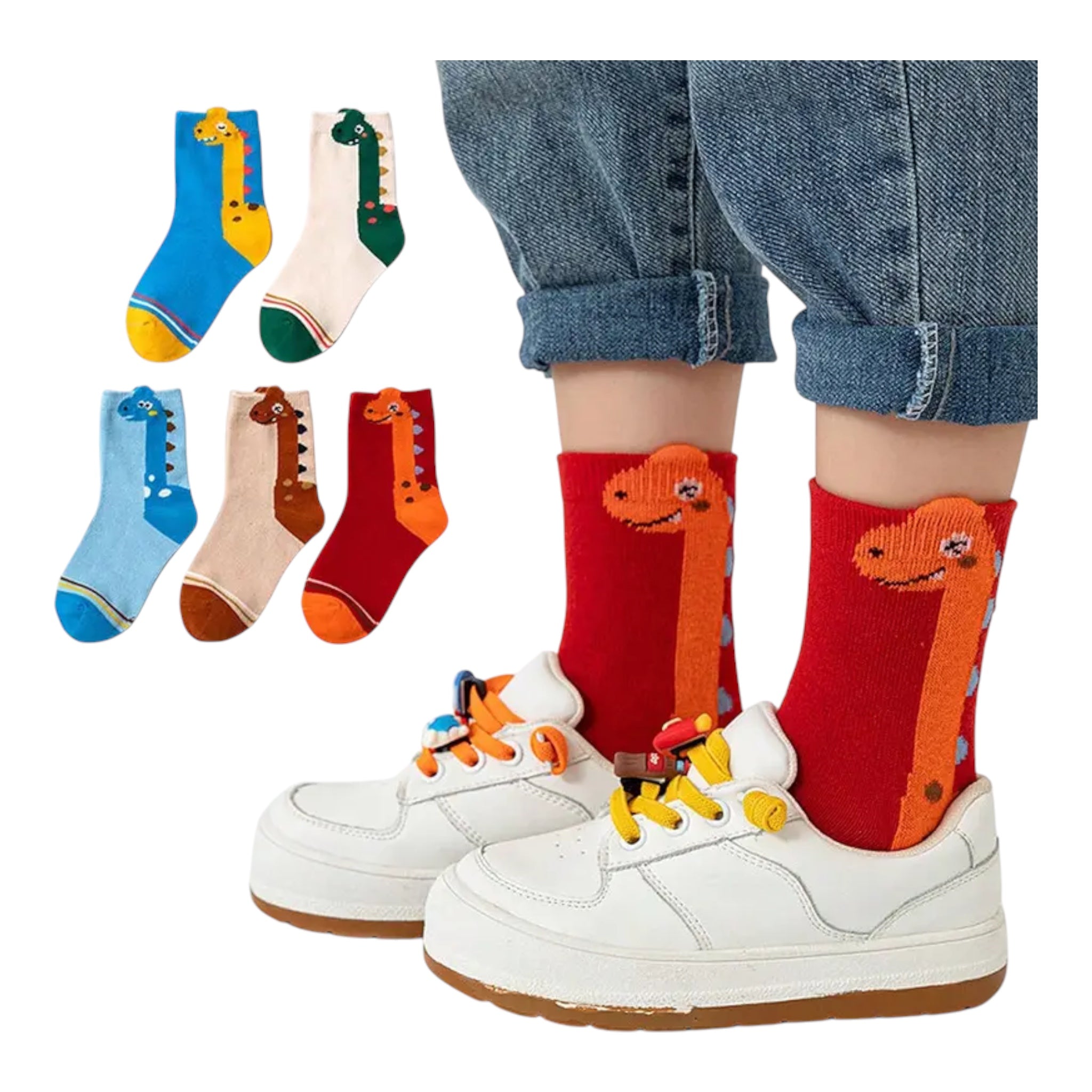 الكمية: مجموعة من 8 أزواج من جوارب الديناصور للعبوة