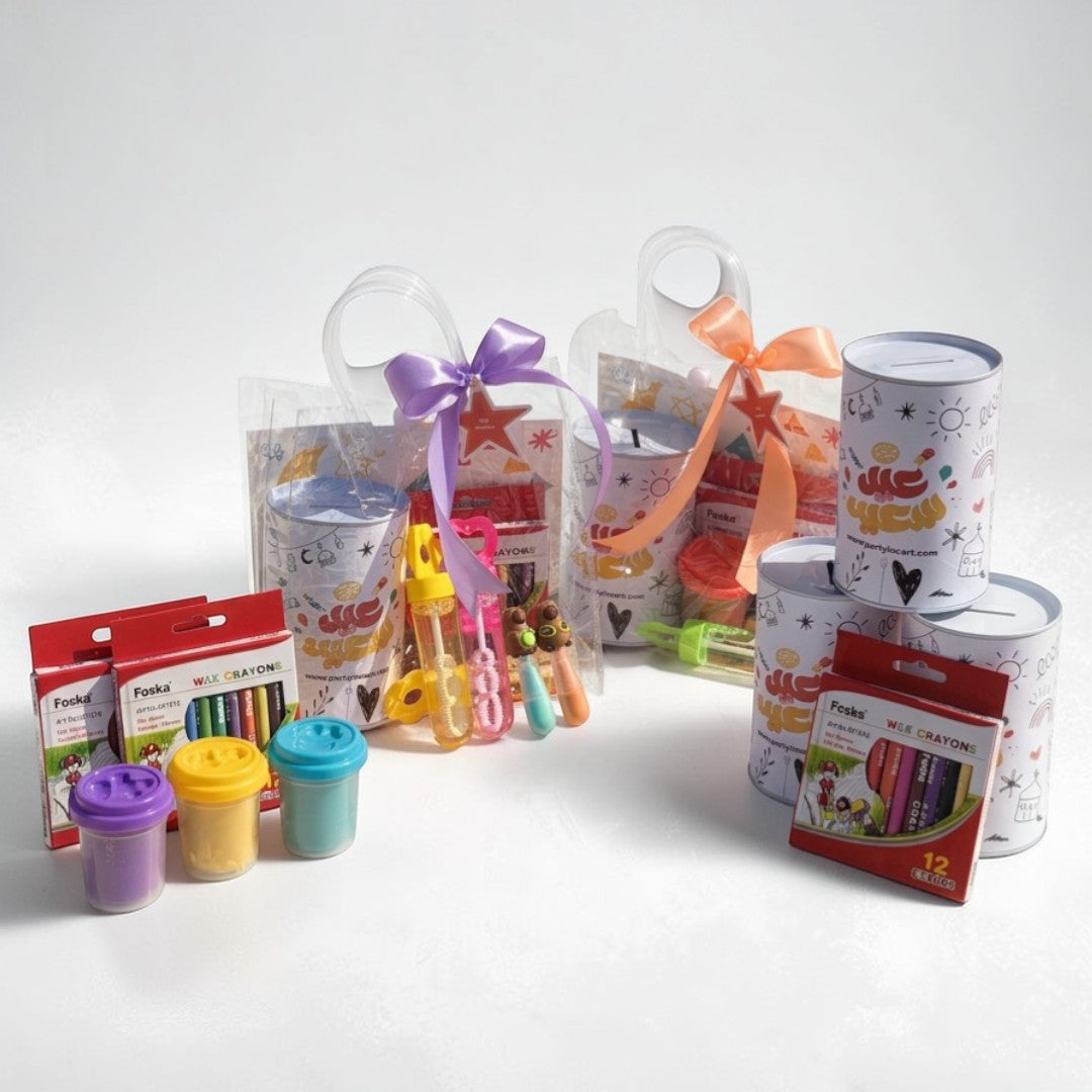 حصالة نقود قابلة للتلوين + أقلام تلوين - معجون لعب - قلم تظليل - عصا فقاعات