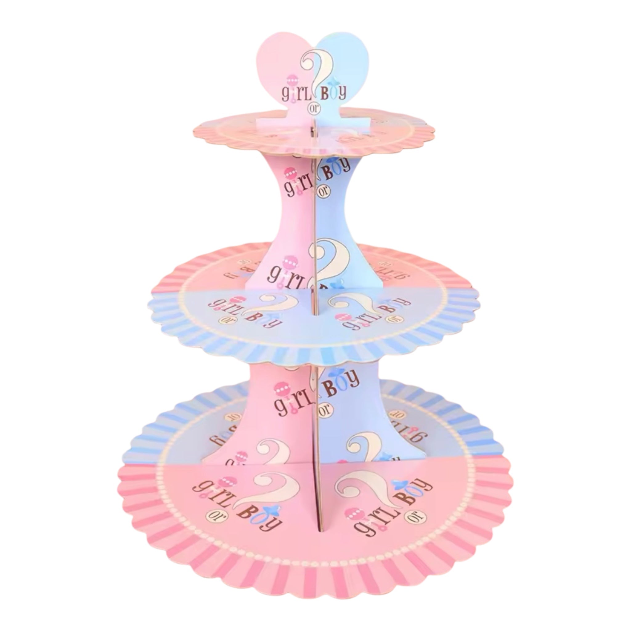 اسم المنتج: حامل كب كيك مكون من 3 طبقات للكشف عن جنس الطفل من فريق الصبي وفريق الفتاة