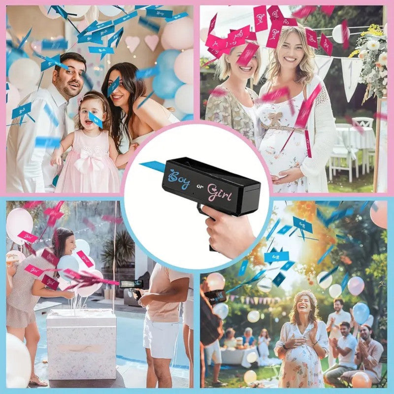 المميزات: سهل الاستخدام بتأثير درامي. يُطلق مسحوقًا ملونًا أو قصاصات ورقية (وردي أو أزرق) لإطلالة نابضة بالحياة. خفيف الوزن وآمن، مما يضمن أجواءً مرحة واحتفالية.