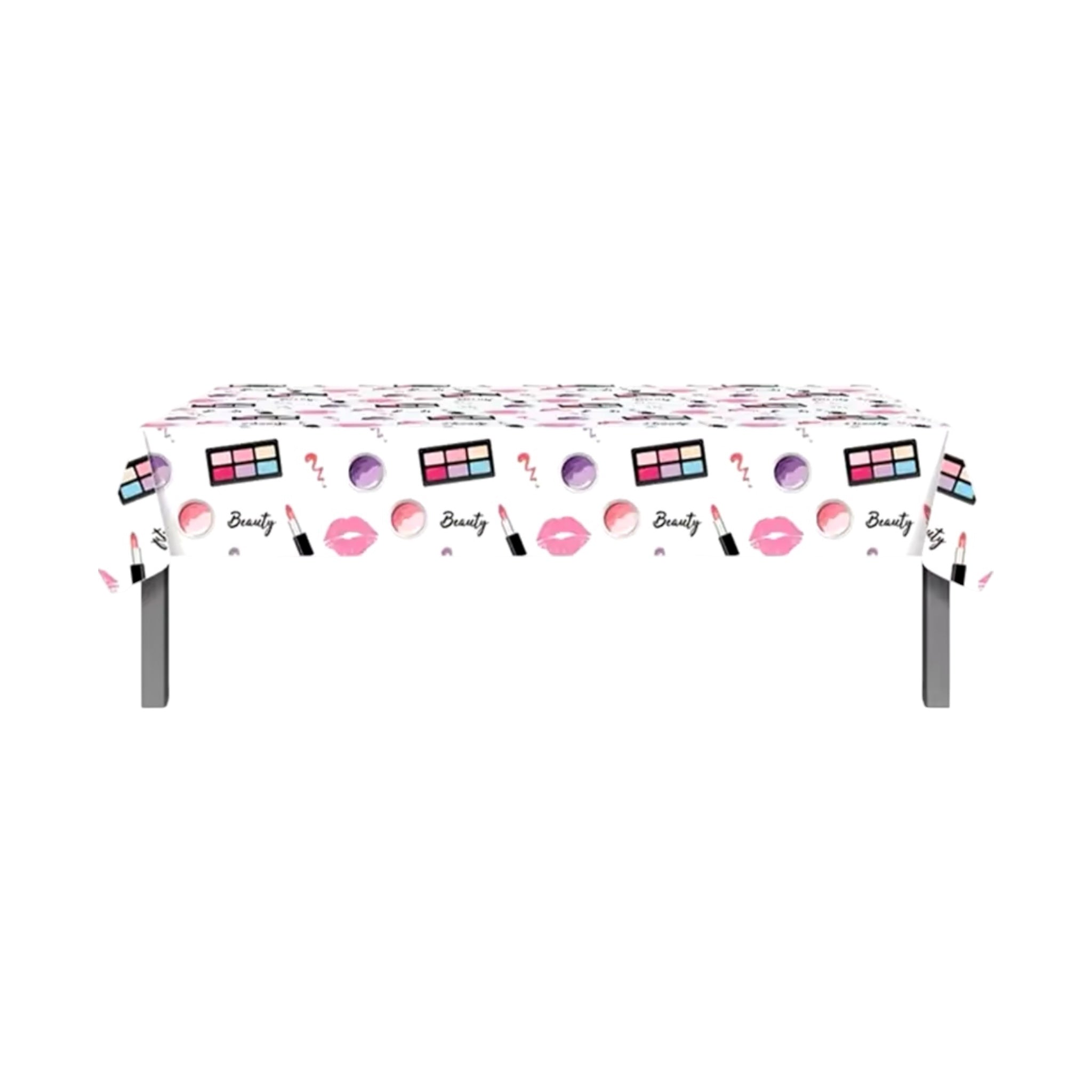 اللون: وردي ناعم مع تصميمات ذات طابع تدليل، تتضمن مكياجًا وأحمر شفاه وفرشًا وأدوات سبا