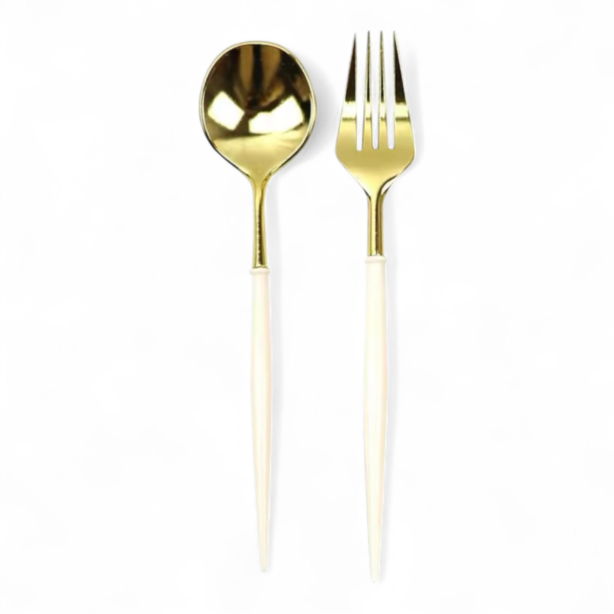 اسم المنتج: مجموعة أدوات مائدة بلاستيكية فاخرة باللونين الذهبي والأبيض