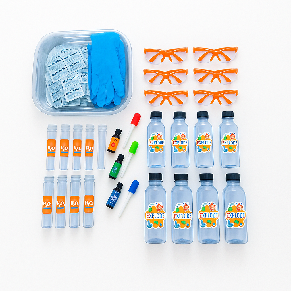 استعدوا لتجرية فوارة مذهلة! مجموعة الأنشطة الخاصة بنا، المستوحاة من مختبر العلوم، تجلب سحر الكيمياء إلى منزلكم أو فصلكم الدراسي. مثالية للأطفال الفضوليين، تجمع هذه التجربة الشيقة بين بيروكسيد الهيدروجين والصابون والخميرة وبعض المكونات الغامضة لخلق انفجار رغوي آمن، تعليمي وممتع في آن واحد!