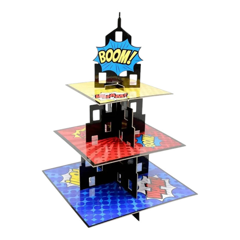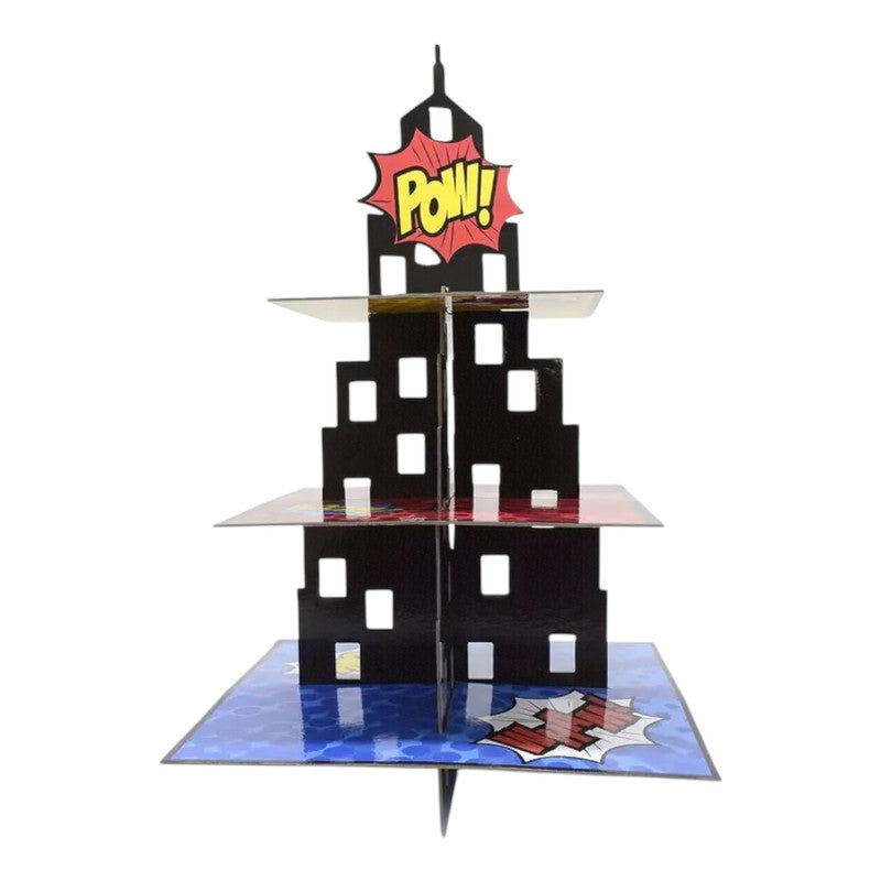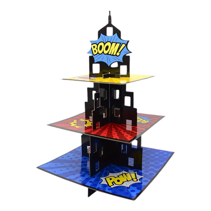 اسم المنتج: حامل كب كيك من 3 طبقات مربعة - ثيم بطل خارق