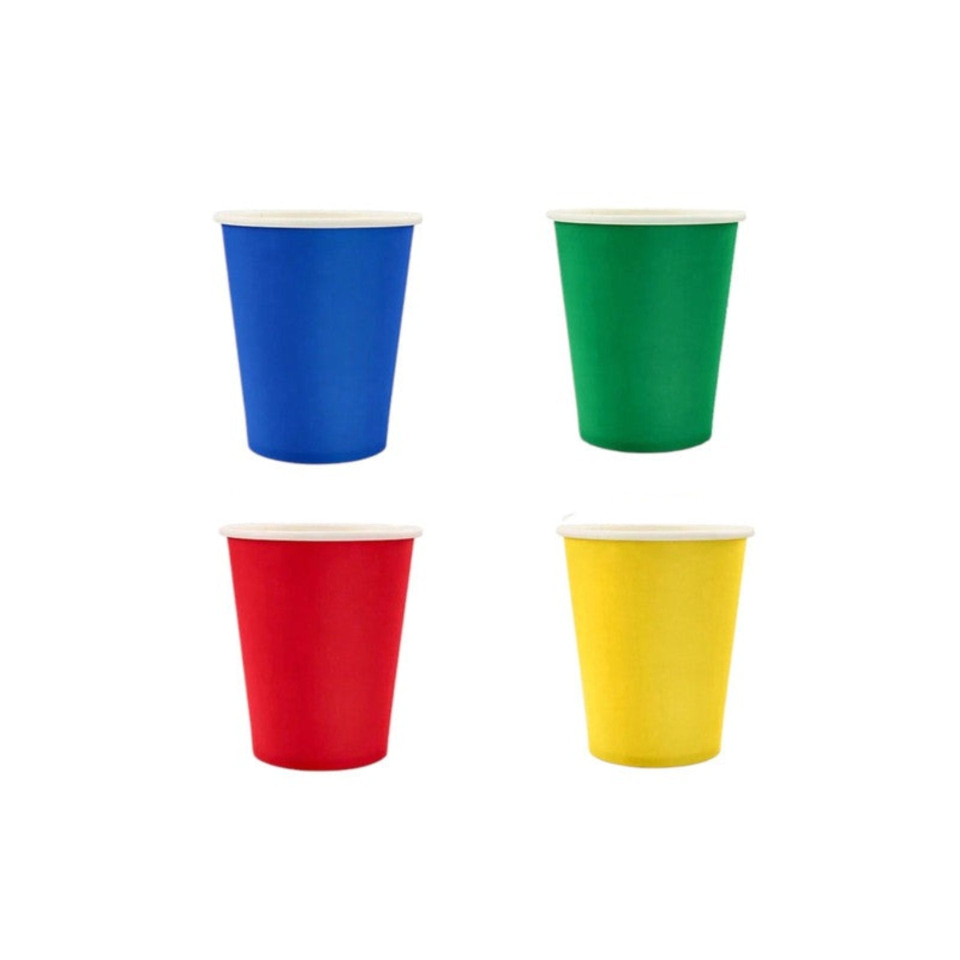 الكمية: 8 أكواب لكل عبوة (2 أخضر، 2 أحمر، 2 أزرق، 2 أصفر)