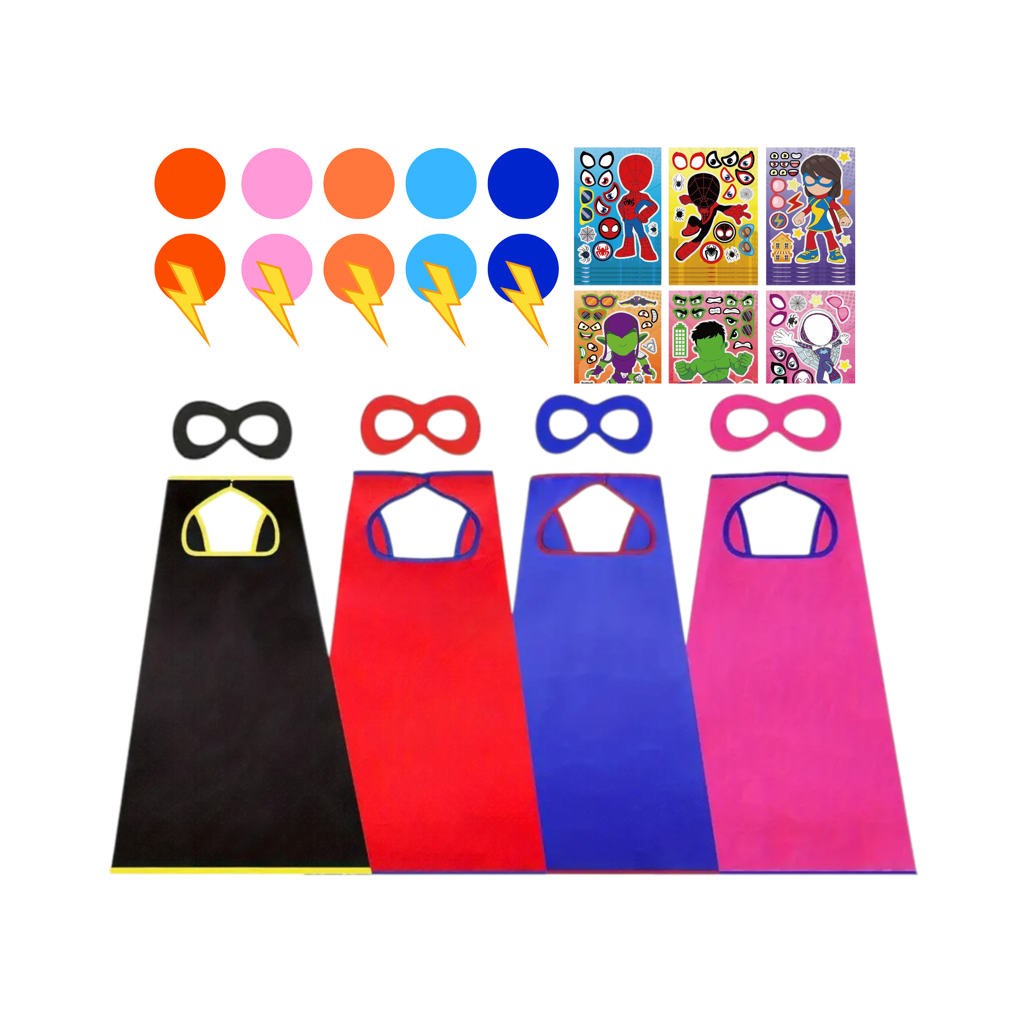 الأبطال الخارقين : 8 أردية + 8 أقنعة للعيون بألوان مختلفة، جاهزة لتتحول إلى تحفة فنية للأبطال الخارقين.
