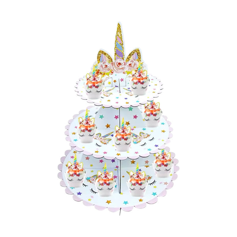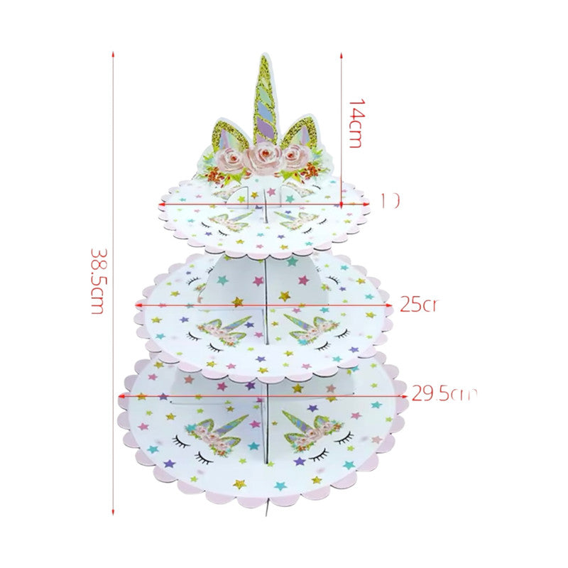 اسم المنتج: حامل كب كيك ثلاثي الطبقات بتصميم عيد ميلاد يونيكورن